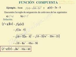 está formada por la composición de dos funciones, es decir, la función resultante de aplicar a x una función en primer lugar y a continuación a este resultado le aplicamos una nueva función.